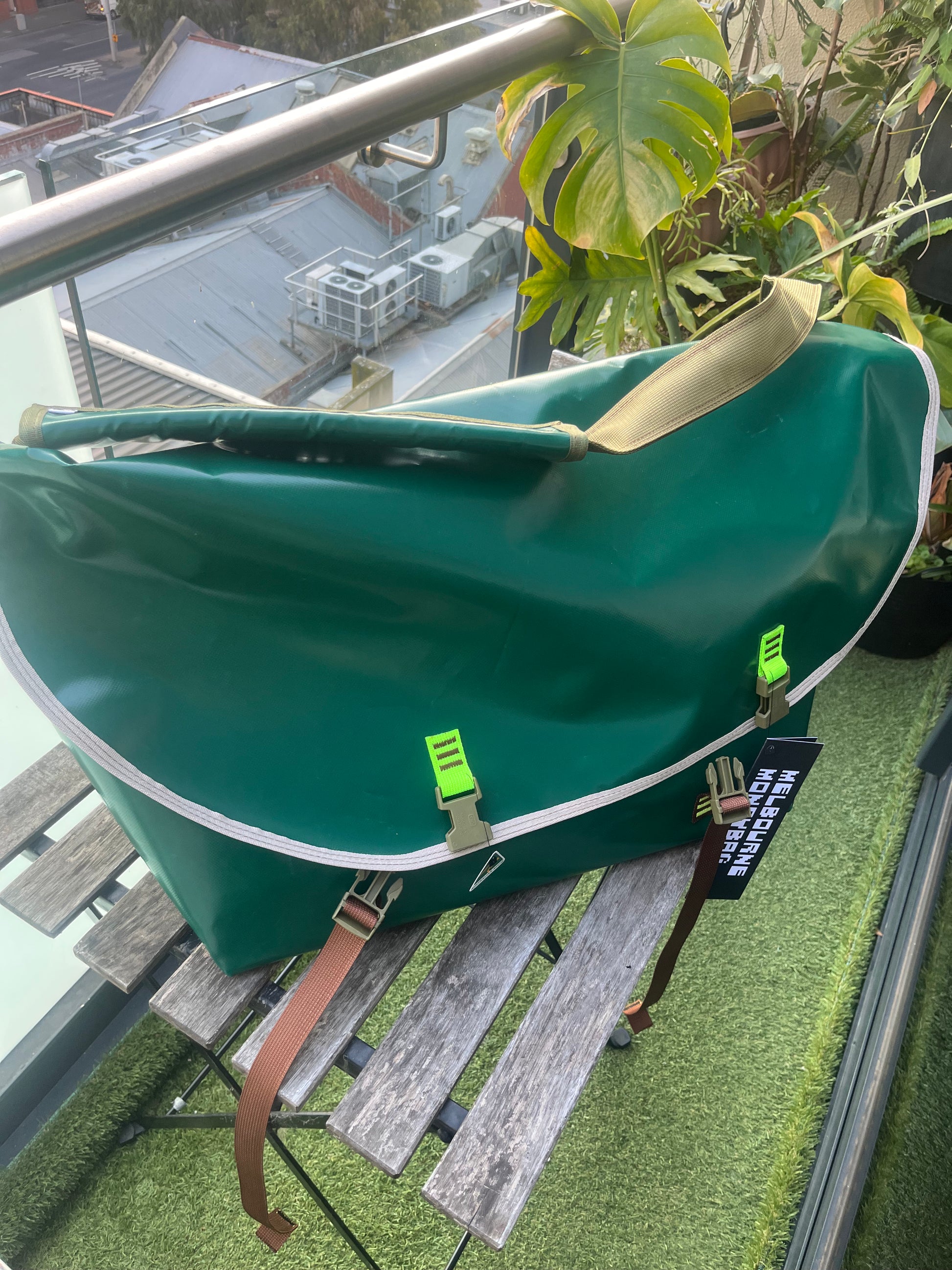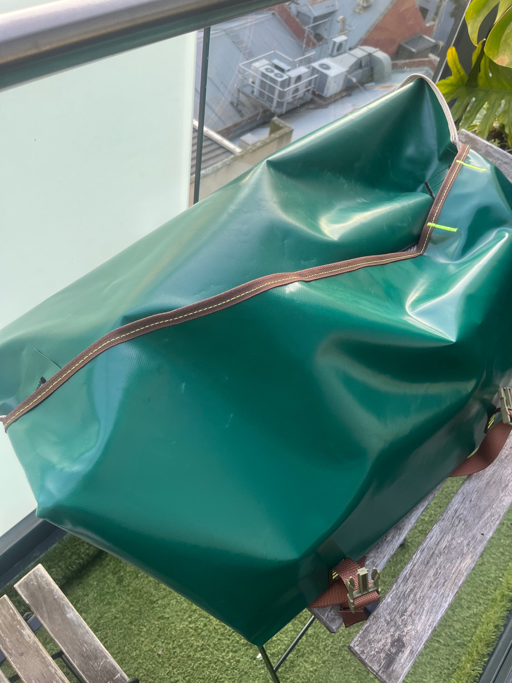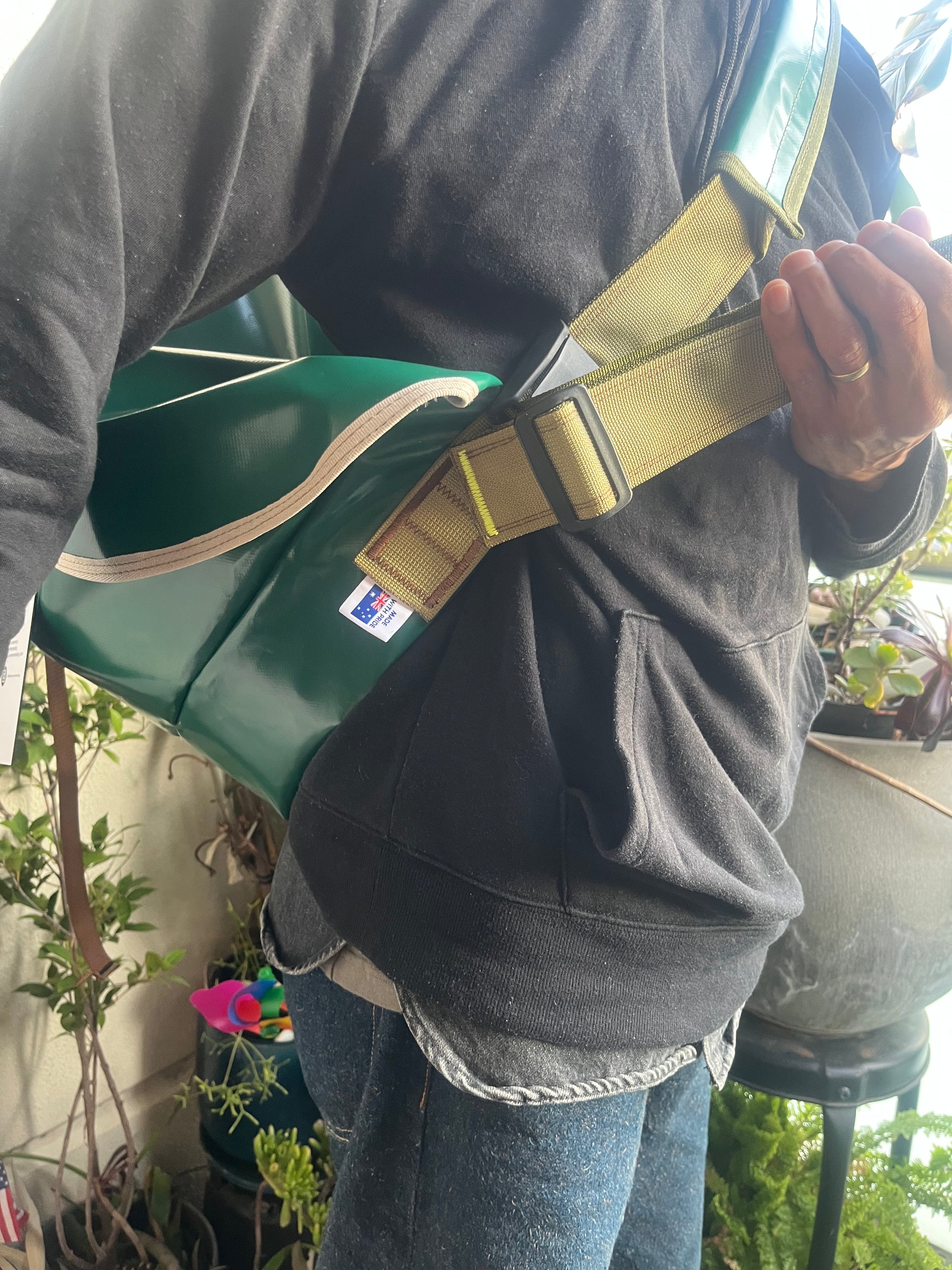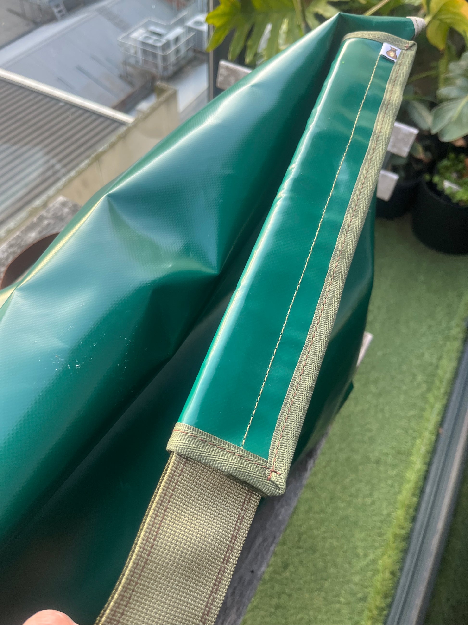 Hunter Green PVC / Shoulder strap Army green on the outside with khaki on the inside And brown thread detail