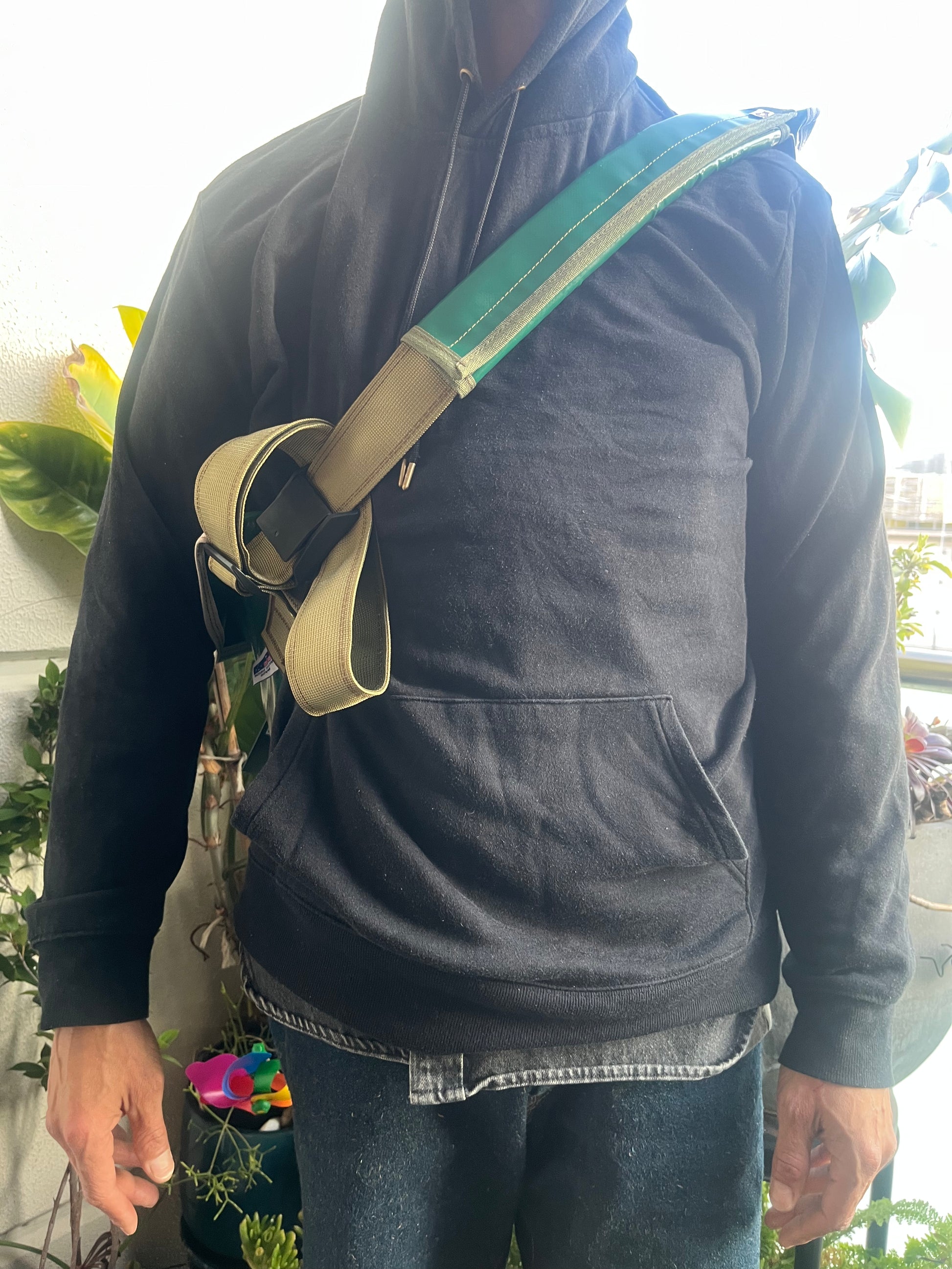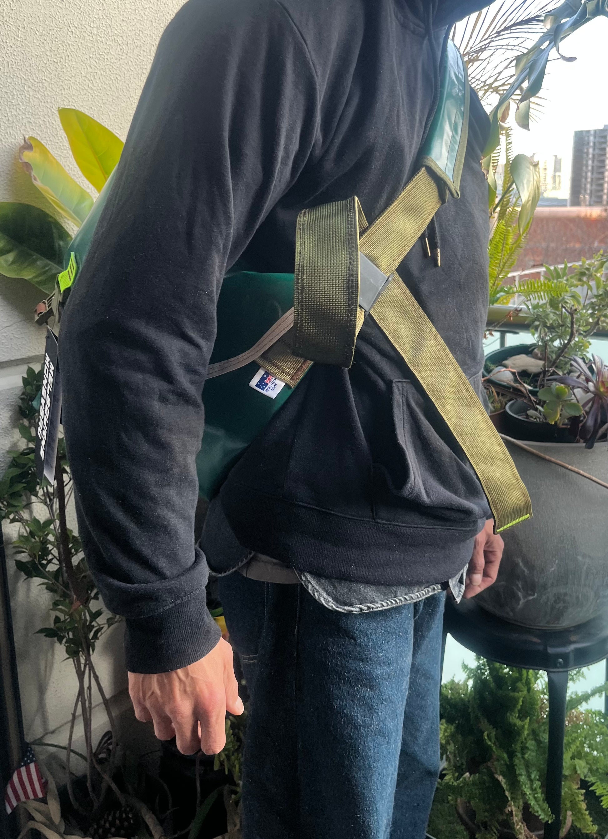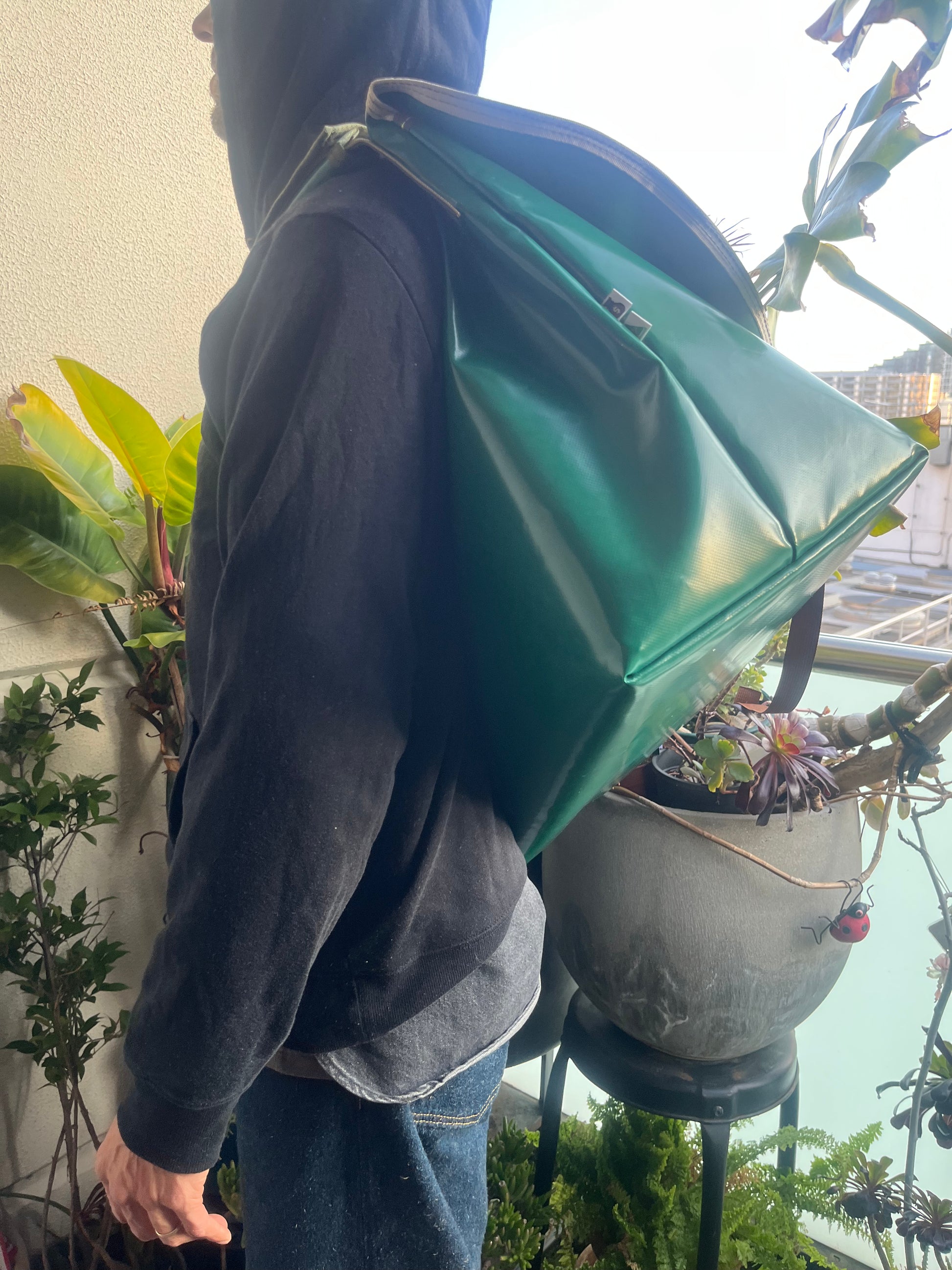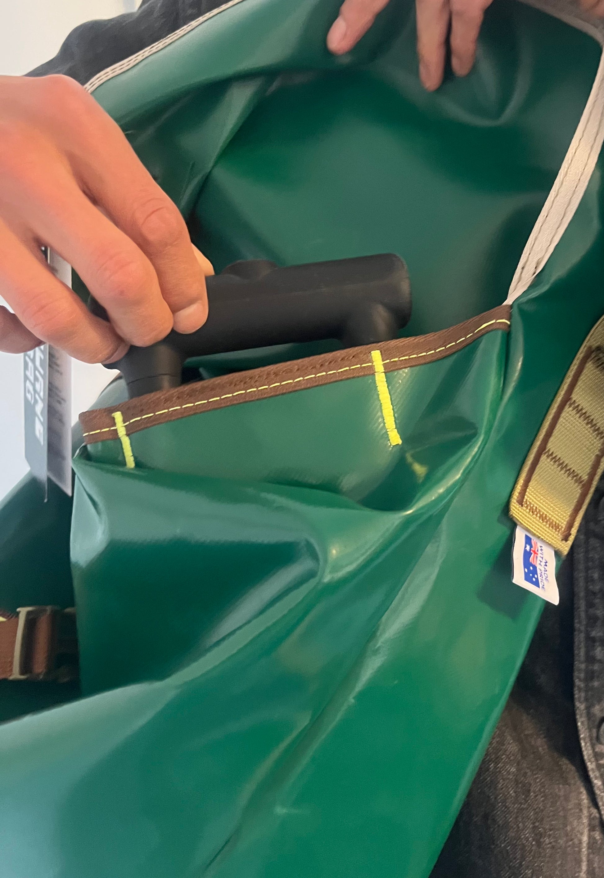 Hunter Green PVC / Shoulder strap Army green on the outside with khaki on the inside And brown thread detail