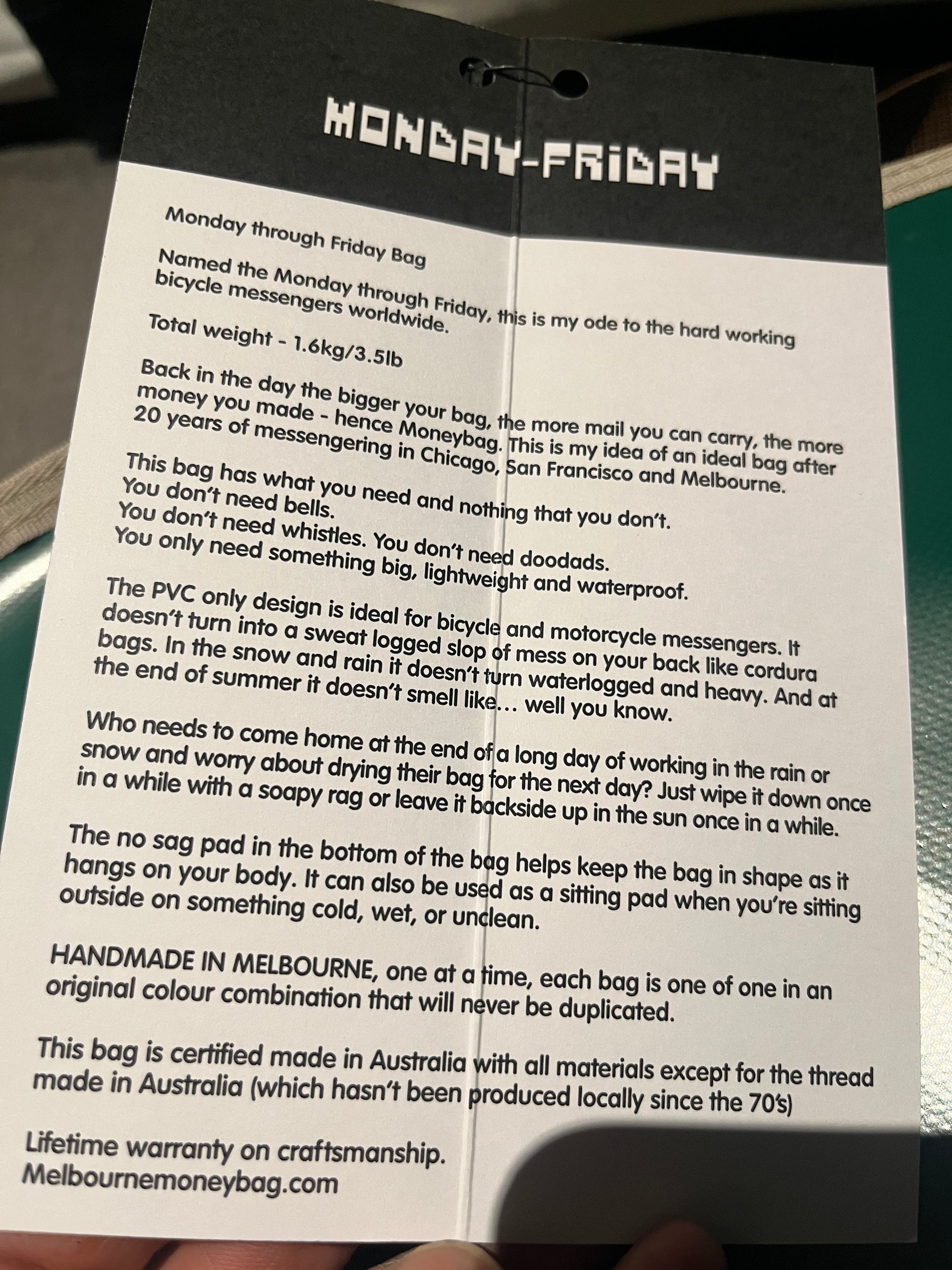Each bag is made one at a time by me and me only using an original color combination that will never be duplicated Using materials made in Australia
