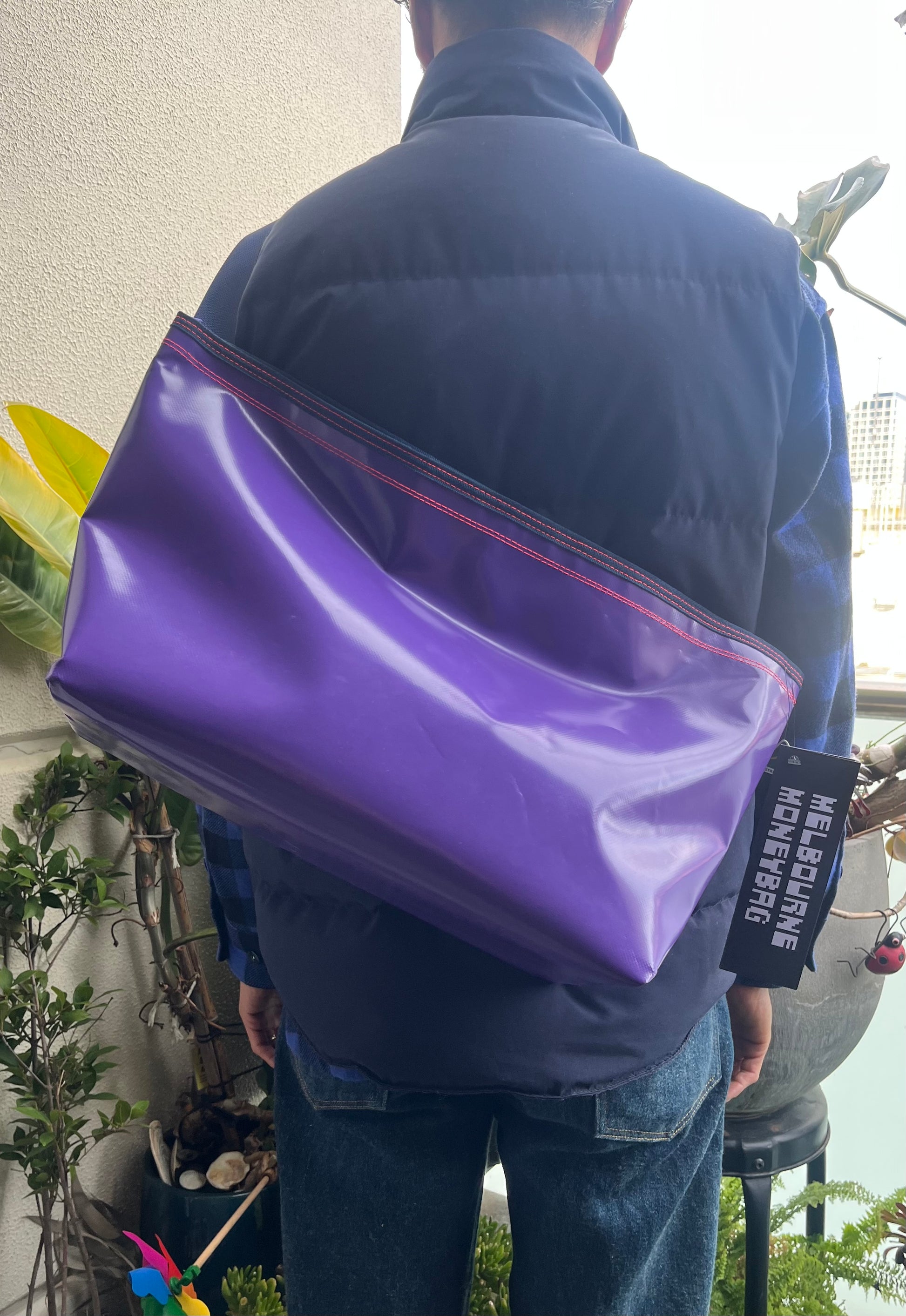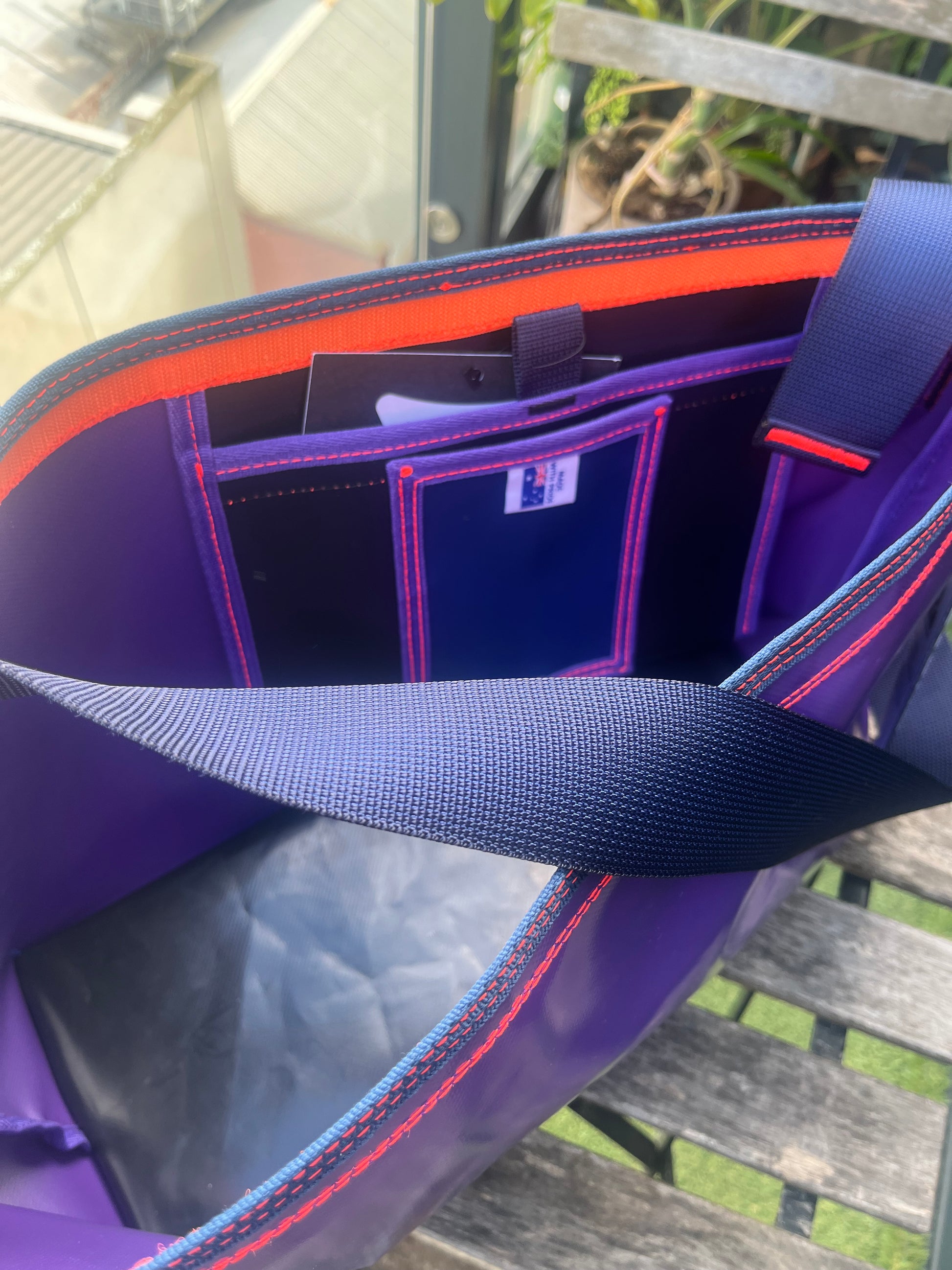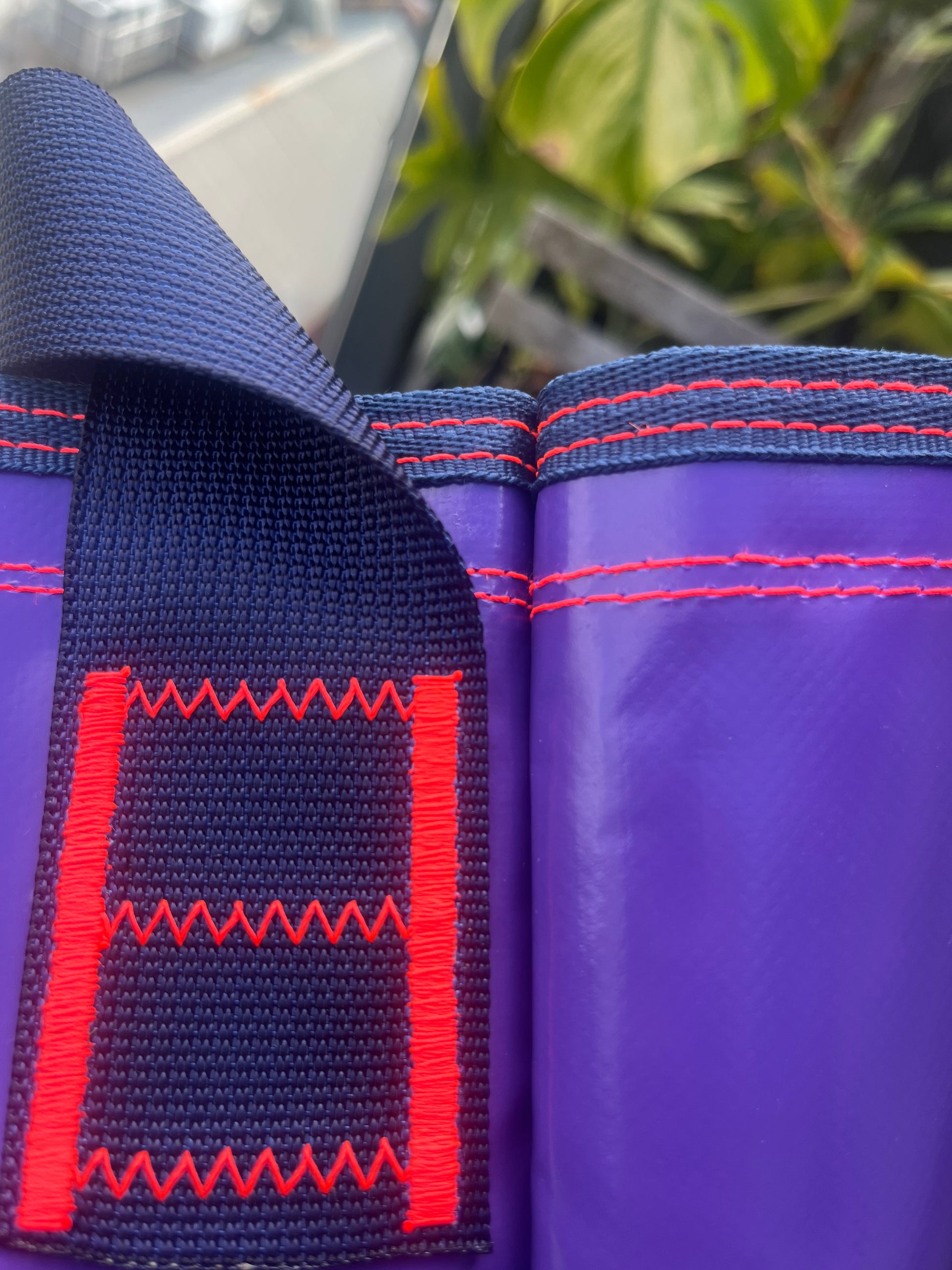 Purple PVC With navy blue binder and fluorescent orange thread-